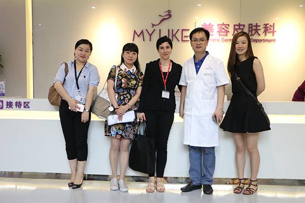 上海美莱高层领导和医生对·杜克修丽可总经理Lesllie Herris 女士等一行人的亲临参观交流表示欢迎,Lesllie Herris 女士和上海美莱皮肤科黄桂云主任就皮肤技术领域的创新进行了深入的交流和探讨,深入了解目前中国皮肤美容的前景,并交流了临床使用后的心得。