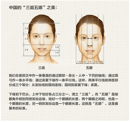面部整形美容要符合“三庭五眼”、“四高三低”
