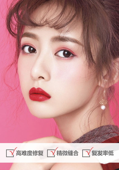 失败 双眼皮太宽太假,重睑弧度不流畅,双眼不对称;